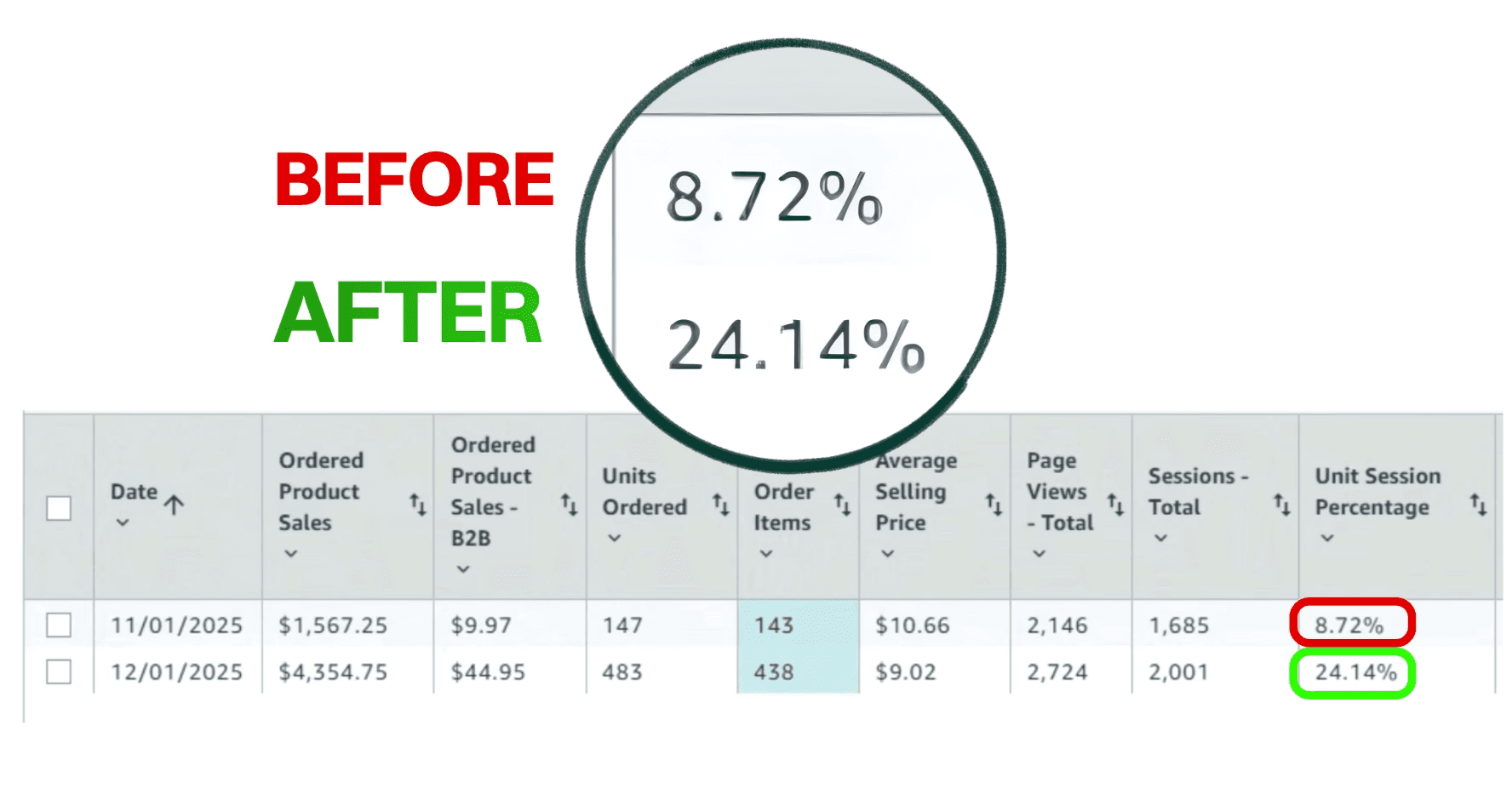 A skincare brand upgraded its Amazon page with Premium A+ content, boosting conversions from 8.72% to 24.15%. This nearly 400% improvement was achieved in just one month without extra ad spend.
